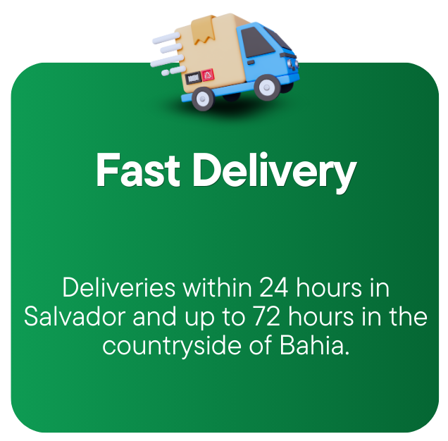 It operates with a fleet of five company-owned vehicles, ensuring delivery within 24 hours in Salvador/Metropolitan Region and up to 72 hours in the countryside of Bahia.